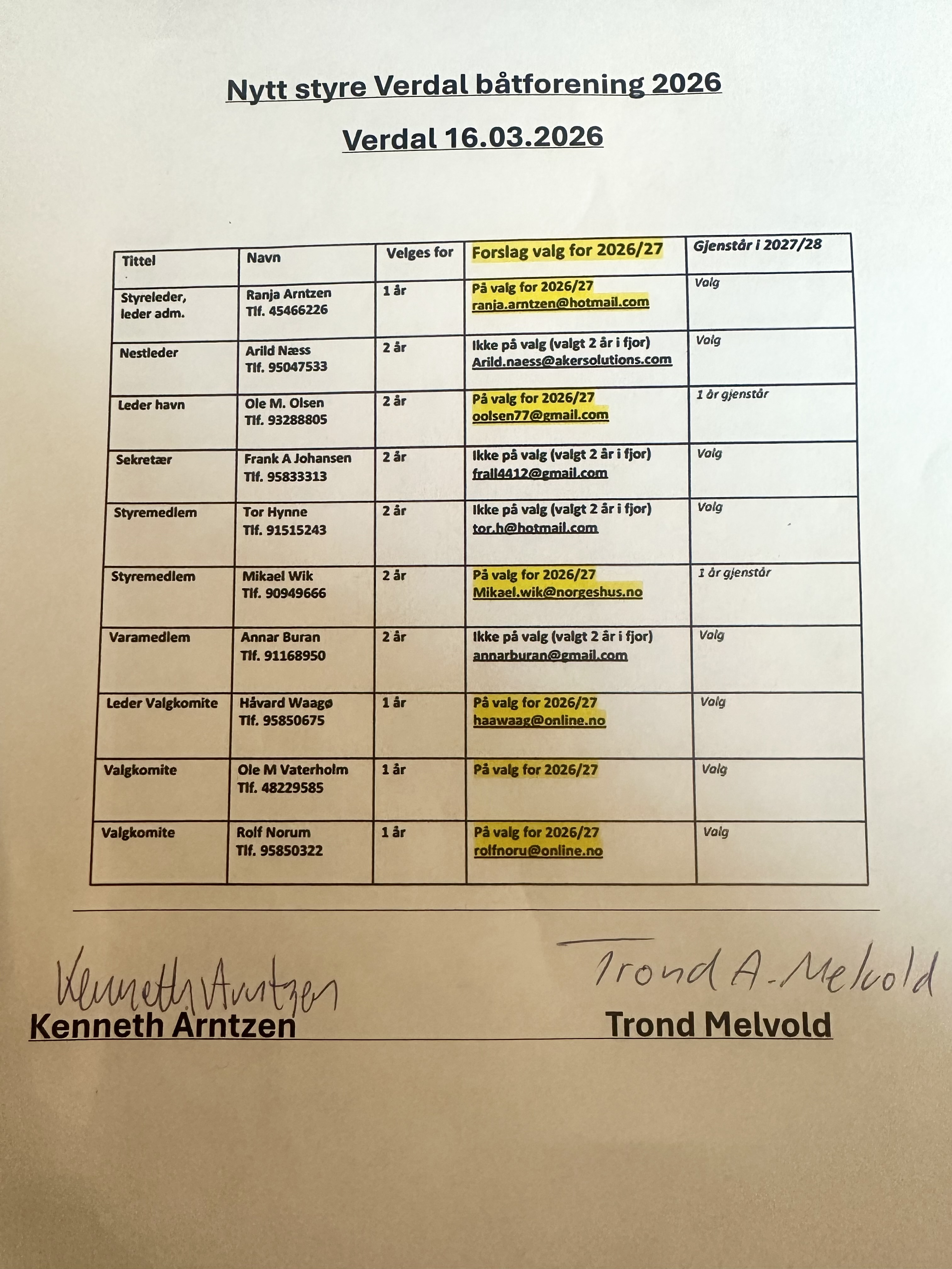 Innkomne forslag senest 14 dager før årsmøte. sendes til: verdalbaateierforening@hotmail.no